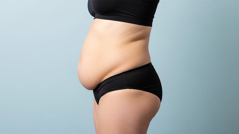 In the front abdomen, some patients also have rectus diastasis, meaning the “six-pack” muscles are still present but the midline support tissue has stretched and widened. When that layer is tightened, the abdomen can feel more supported. (PMC)